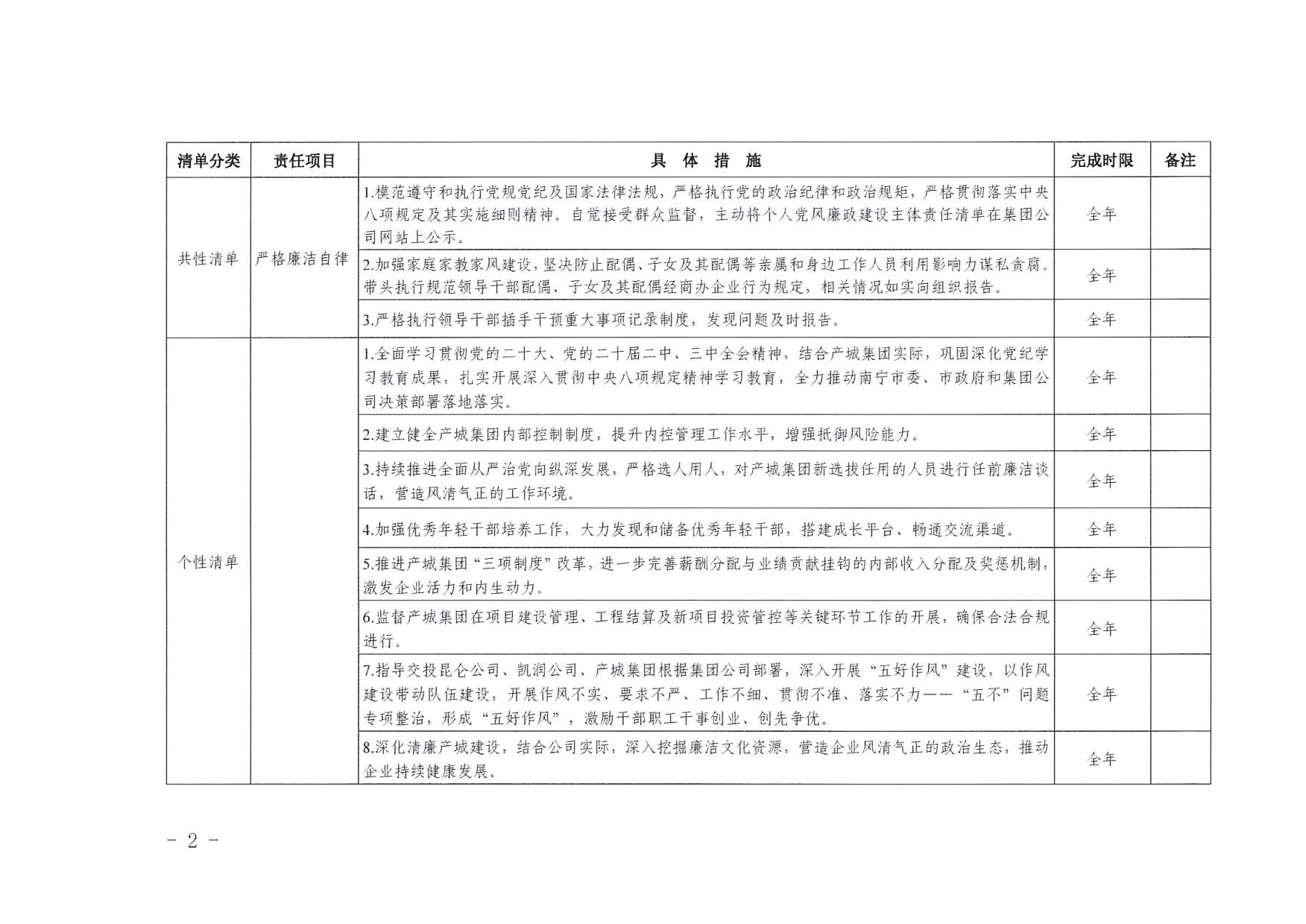南寧交投集團領(lǐng)導(dǎo)班子其他成員2025年度黨風廉政建設(shè)“一崗雙責”清單(八)